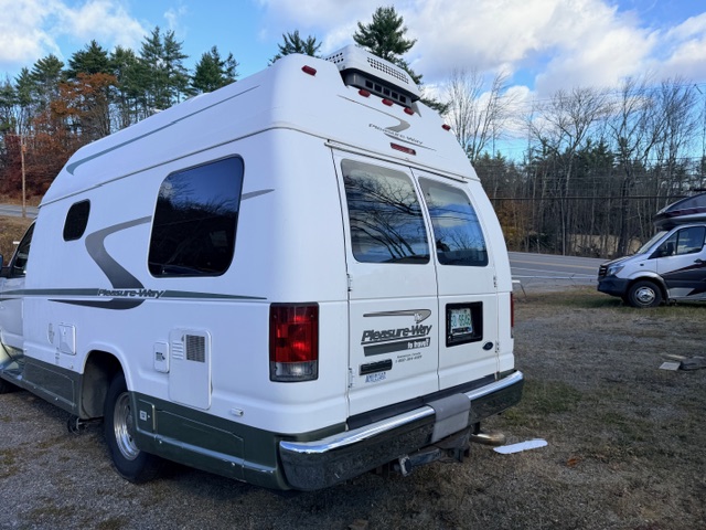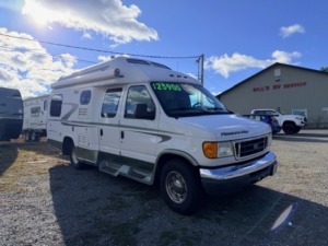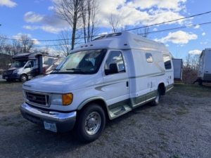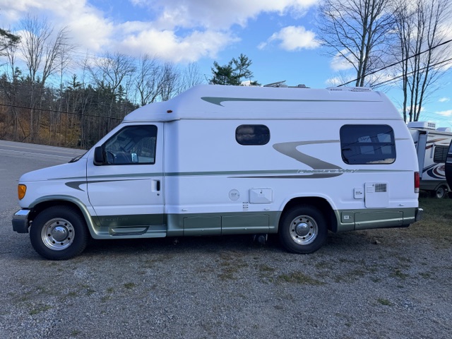 The 2006 Pleasure-Way Excel TS is a 20-foot, Class B motorhome built on a Ford E-350 chassis with a 5.4L V8 engineKey specifications include a rear dinette floor plan, a wet bath, a kitchenette with a two-burner stove and refrigerator, and an electric sofa that converts to a large bed. It features a 5,000 lb towing capacity, an awning, an exterior shower, and a built-in generator.