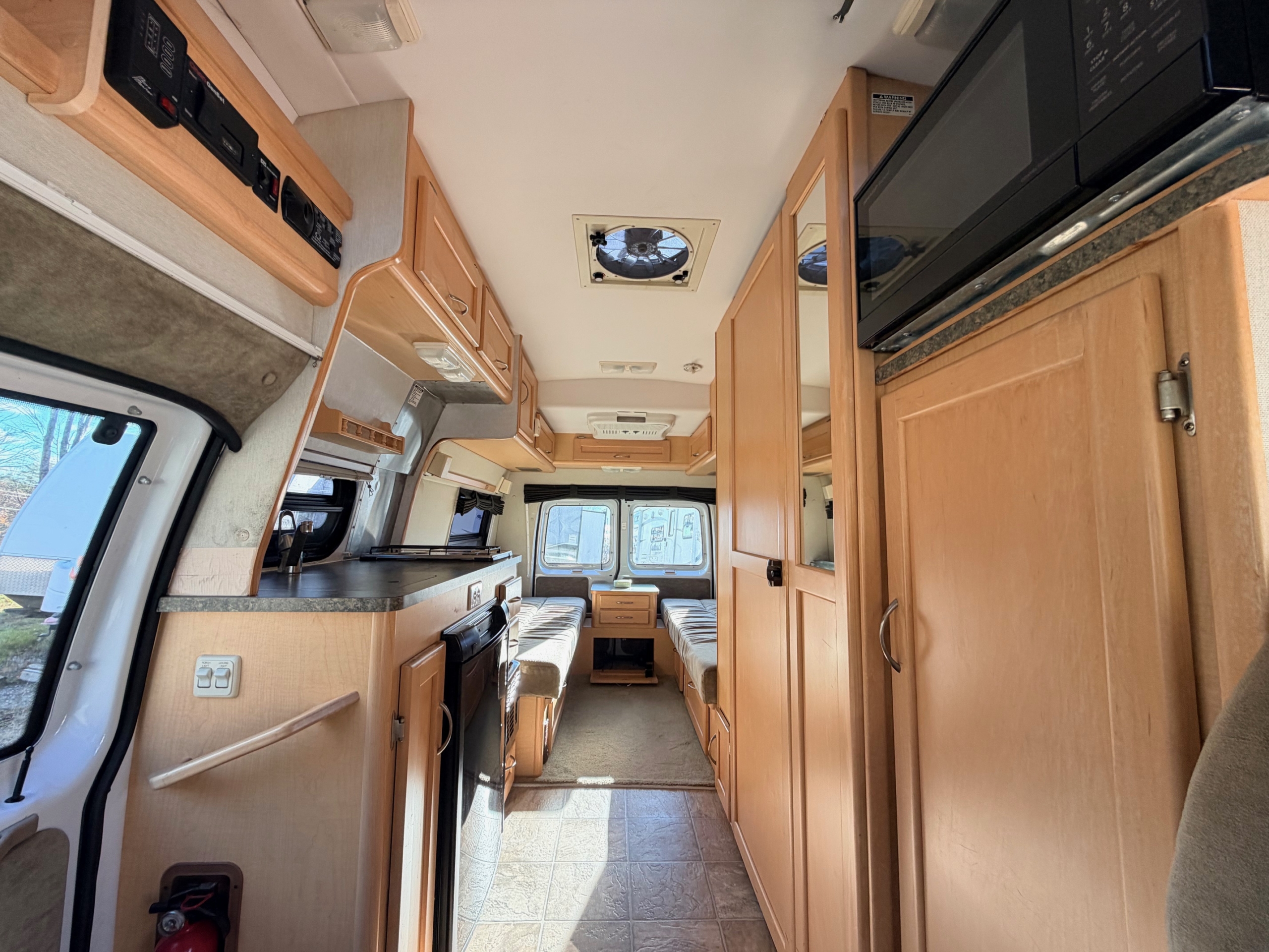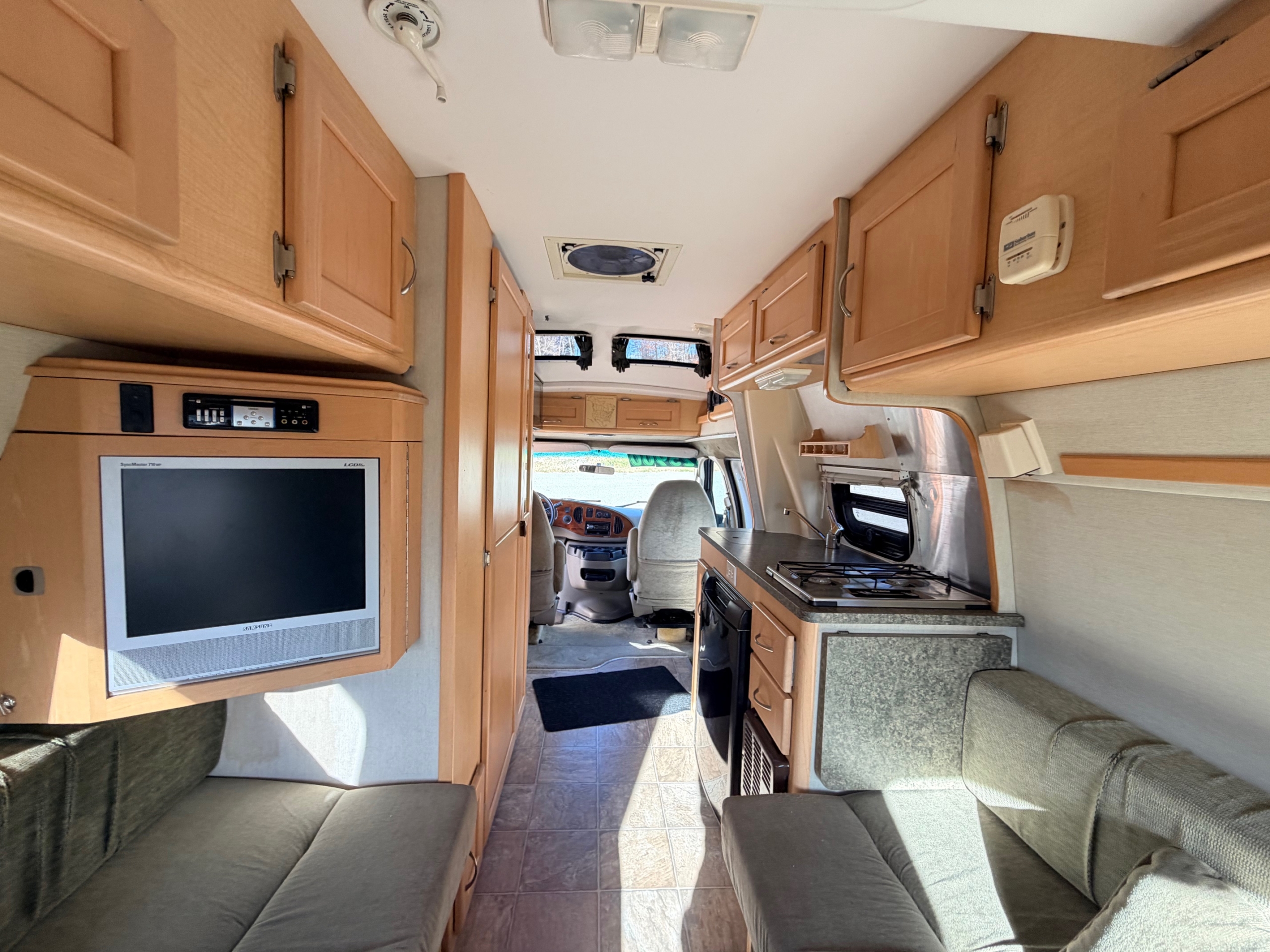 • Kitchen: Two-burner propane stove, sink, refrigerator, microwave, and convection microwave (optional)