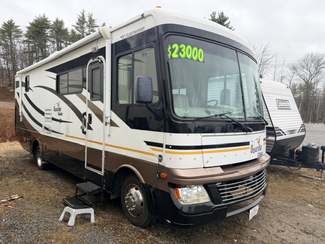 The 2011 Fleetwood Bounder Classic 30T is a 30′ 7″ Class A motorhome built on a Ford F-53 chassis with a 6.8L Triton V10 engine (362 hp). It features two slideouts, a 50-amp service, 5.5kW Onan generator, and roughly 180 cu ft of exterior storage. Key specs include 50-gal freshwater, 40-gal gray, 30-gal black tanks, and a 20-gal LP tank.