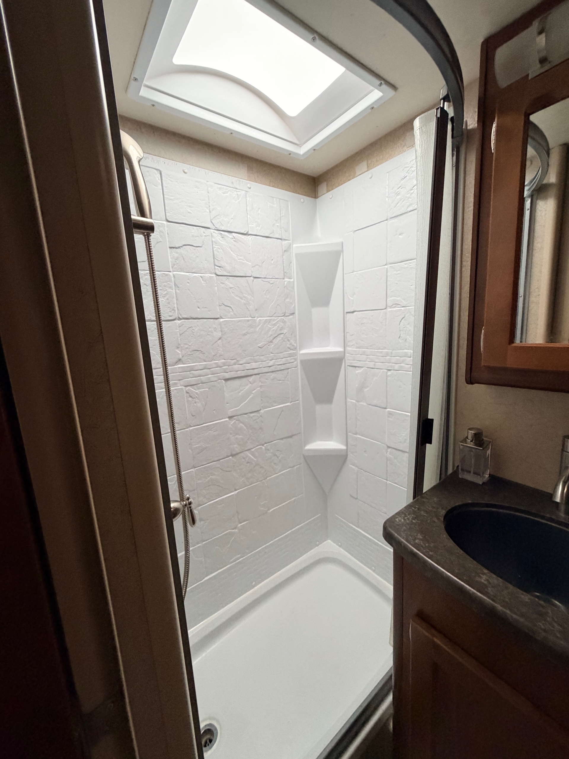 • Construction: Aluminum-framed sidewalls, floor, and ceiling with block foam insulation and Azdel interior panel walls