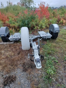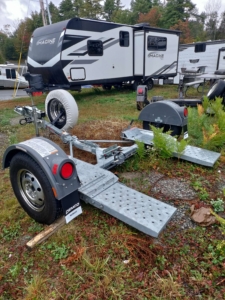 Demco prides itself by offering a galvanized finish to the Kar Kaddy SS, preventing rust and paint chips and the galvanized tongue and loading ramps stow away for storage. Just these features alone, set us apart from the competition. There is no need to worry about finish issues and the storage problem is solved. The SS in the logo stands for Space Saver. Demco introduced the steerable axle to the industry in 1982. This is still used today on the Kar Kaddy SS and allows for a tighter 15% turning radius, the tightest in the industry, that tracks directly behind the motor home. The feature provides less sliding and binding of the tires but ultimately the tracking of the unit wins over the competition.