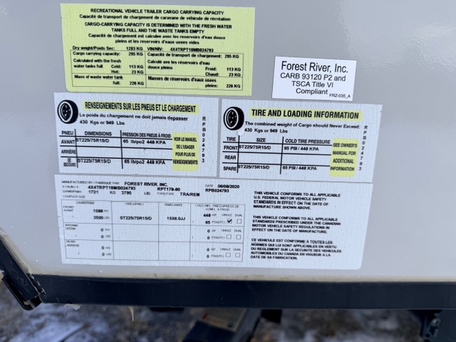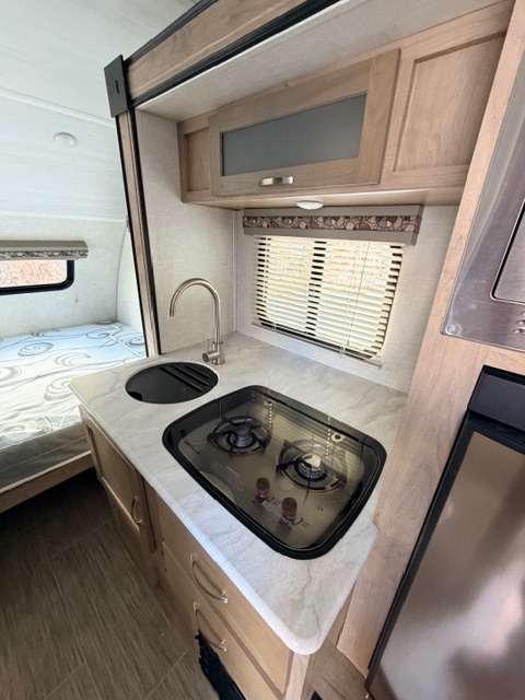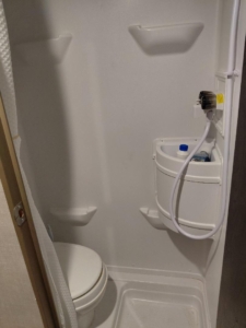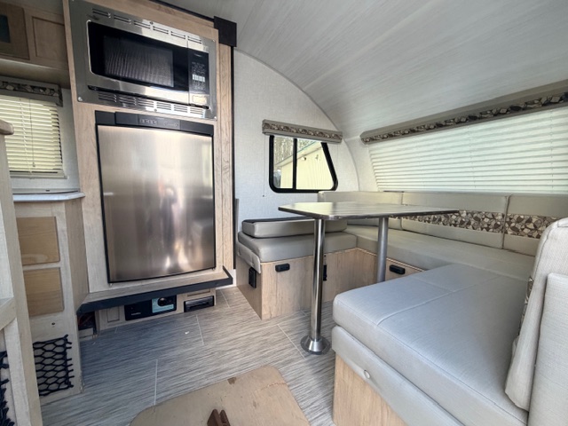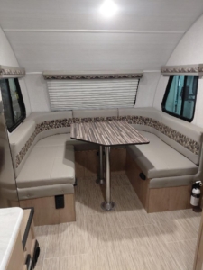 - Interior: U-shaped dinette, vinyl flooring, standard shower.