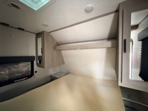 - Bedroom: Queen bed with sliding doors, nightstands with USB and 110v outlets